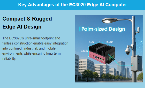 IBASE Technology Inc присоединяется к клубу производителей компьютеров на базе NVIDIA Jetson. Компания выпустит безвентиляторный компьютер EC3020, основой которого станут модули Jetson Orin NX и Jetson Orin Nano. Это компактное устройство предназначено для работы в качестве шлюза Интернета Вещей или сервера сбора данных в городской и транспортной инфраструктуре, а также в системах автоматизации здания и видеонаблюдения. компактное устройство предназначено для работы в качестве шлюза Интернета Вещей или сервера сбора данных в городской и транспортной инфраструктуре, а также в системах автоматизации здания и видеонаблюдения. Наряду с энергоэффекивностью сильной стороной модулей Jetson является аппаратная поддержка нейросетей и поэтому в последнее время Jetson стали популярным решением для запуска приложений с технологиями ИИ.