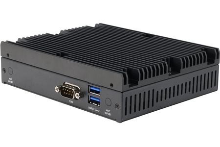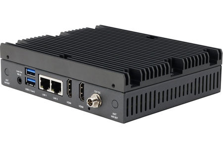 На передней панели корпуса находится аудиоразъем, два гнезда USB 3.2, два гигабитных порта Ethernet, два видеовыхода HDMI ввод питания. На заднюю панель выведены еще два гнезда USB 3.2 и универсальный COM-порт RS-232/422/485.