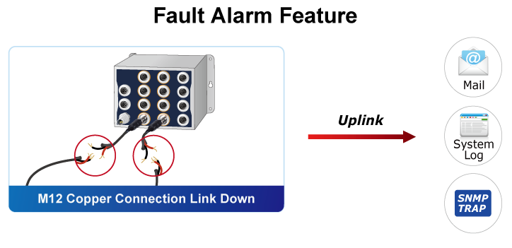 Помимо дискретного интерфейса, при аварийных ситуациях внутреннее ПО коммутатора может отправлять e-mail и SNMP-оповещения.