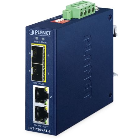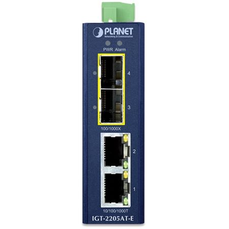 Промышленный медиаконвертер IGT-2205AT-E, 2 x 100/1000BASE-X SFP SFP, 2 x 10/100/1000BASE-T, монтаж на DIN-рейку, резервированное питание 12~58 V D, -40~75C