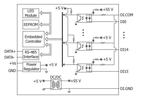 Модуль I-7051, дискретного ввода 16-канальный, изоляция, RS-485, DCON, питание 10-30 В DC