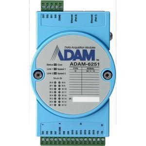 Модуль дискретного ввода ADAM-6251-B, 16 каналов дискретного ввода, 2 x 10/100Base-T(X), протокол Modbus TCP, питание 10~30 V DC