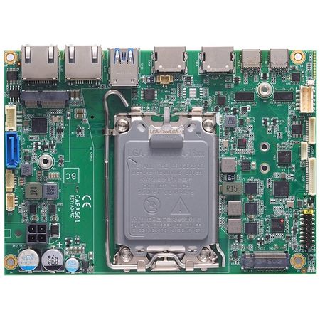 Процессорная плата CAPA561-LGA-2LH, форм-фактор 3.5'', LGA1700, 2 DDR5 SODIMM, 2 HDMI, 2 DP, LVDS, 3 LAN, 2 COM, 6 USB, DIO, 2 M.2 (M2280, E2230, B3042/52), питание 12 V DC, 0~60C (pn E38E561102)