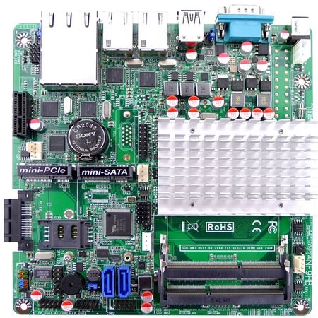 Intel Celeron N3350, 1 х SO-DIMM DDR3L, 1 х VGA, 2 x Gb Lan, 1 х CAN, 1x DIO, 2 х USB 3.0, слоты расширения 2 x Mini-PCIe, питание 12-24 DC-In, рабочая температура -20 ~ + 70 (pn E22C120107)
