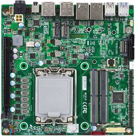 Материнская плата MI215H6100, форм-фактор Mini-ITX, Core 12/13 поколения, LGA 1700, H610, 2 DDR5 SODIMM, 2 DP, 2 HDMI, 1 LVDS, 2 LAN, 6 USB, 6 COM, 1 PCIe x16, 3 M.2 (M2280, E2230, B3042/3052), GPIO, питание 12~36 V DC, 0~60C