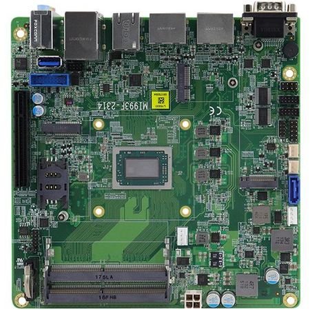 Материнская плата MI993F-2514, форм-фактор Mini-ITX, с процессором AMD R2514, 2 DDR4 SODIMM, 2 HDMI, 2 DP, 2 LAN, 7 USB, 4 COM, GPIO, 3 M.2 (M2280, E2230, B3052), 1 PCIe x8, 0~60С
