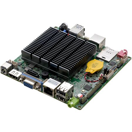 Intel Celeron N3350, 1 х SO-DIMM DDR3L, 1 х VGA, 2 x Gb Lan, 1 х CAN, 1x DIO, 2 х USB 3.0, слоты расширения 2 x Mini-PCIe, питание 12-24 DC-In, рабочая температура -20 ~ + 70 (pn E22C120107)
