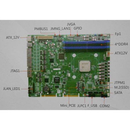 Процессорнач плата HG31SL_6L, процессор Hygon C86 3350, 4 DDR4 DIMM, 1 VGA, 6 LAN, 4 USB, 1 COM, 1 Mini PCIe, 1 M.2 (M2260/2280), 10~50C