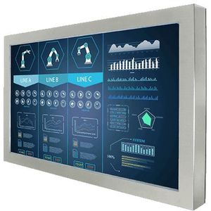 Корпус монитора стальной, его пылевлагозащита сертифицирована на соответствие классу IP65 как по передней панели, так и для всего корпуса. Традиционно для герметичных дисплеев, все внешние подключения к выполнены через разъемы M12 с резьбовой фиксацией. На передней панели расположен только дисплей. Разрешение матрицы составляет 1920 x 1080 пикселей, яркость дисплея - 500 нит, а коэффициент контрастности - 4000. Матрица дисплея защищена от механических воздействий слоем закаленного стекла. Органы управления дисплеем вынесены на заднюю поверхность корпуса. Всего кнопок пять: включение питания, настройка +, настройка -, OK, ESC.