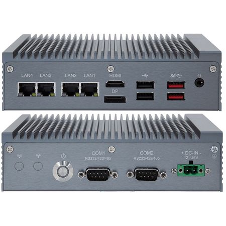 Безвентиляторный компьютер SB-142-2J64, процессор Celeron J6412, 1 DDR4 SODIMM, 1 HDMI, 1 DP, 4 LAN, 2 COM, 4 USB, 2 M.2 (M2242,E2230), 1 Mini PCIe, питание 12~24 V DC, -20~60C