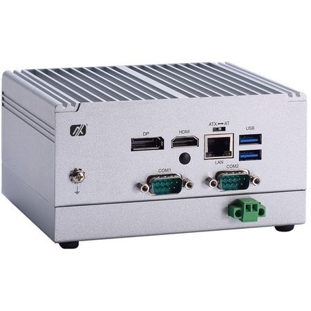 На передней панели компьютера находятся: индикаторы, кнопка включения, два гнезда шины USB 2.0 и порт Gigabit Ethernet. На задней панели расположен ввод питания, видеоинтерфейсы HDMI и DisplayPort, еще один порт Gigabit Ethernet, два универсальных последовательных интерфейса RS-232/422/485 и два гнезда шины UDB 3.1.