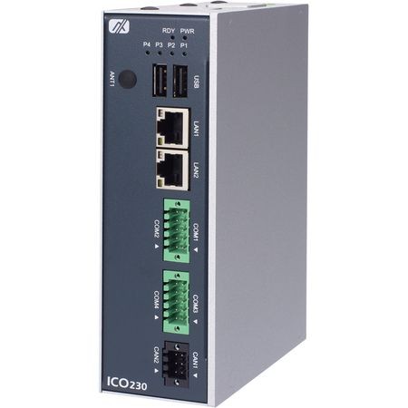Безвентиляторный компьютер ICO230-iMX8MP-A, i.MX 8M Plus Quad, 2 Гб LPDDR4, 1 eMMC, 1 HDMI, 2 LAN, 2 USB, 4 COM, 2 CAN, 1 Mini PCIe, 1 x M.2 E2230, 1 MicroSD, питание 9~48 V DC, -40~70C, (pn E22C230100)