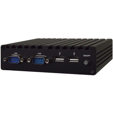 На передней панели находится кнопка включения, два COM-порта и два порта. На заднюю панель выведено два гнезда шины USB 3.2, гигабитный порт Ethernet , видеовыход HDMI, разъем питания.