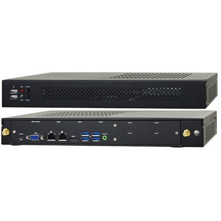 15'' XGA TFT LCD дисплеем, резистивный сенсорный экран, Intel Atom E3827 1.75ГГц, 1x 204-pin DDR3L-1333/1600 до 8 Гб, 1xCFast, 4x RS232/422/485, 2x USB 3.0, 2x USB 2.0, 2x LAN, Аудио, отсек 2.5'' SATA HDD, 1x VGA, 2x PCle Mini Card, питание 9-36В DC