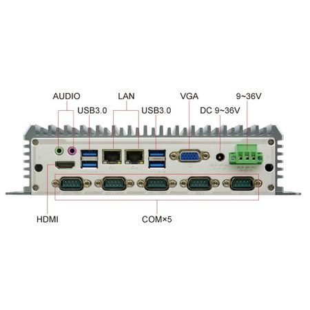 Безвентиляторный встраиваемый компьютер Smartum Embedded-10210: Intel Core i5-10210U 1.60 ГГц / 8 Гб DDR4-2133 / 250 Гб SATA SSD / VGA, DP / 2х GbLan / 1х RS-232/422/485, 2x RS-232, 3x RS-232/485 / 4x USB 2.0, 4х USB 3.0 / Слот расширения 1x Mini PCIe / Питание 9-36V.