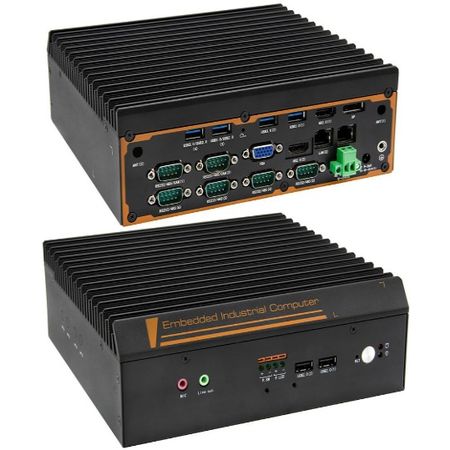 Безвентиляторный встраиваемый компьютер Smartum Embedded-10210: Intel Core i5-10210U 1.60 ГГц / 8 Гб DDR4-2133 / 250 Гб SATA SSD / VGA, DP / 2х GbLan / 1х RS-232/422/485, 2x RS-232, 3x RS-232/485 / 4x USB 2.0, 4х USB 3.0 / Слот расширения 1x Mini PCIe / Питание 9-36V.