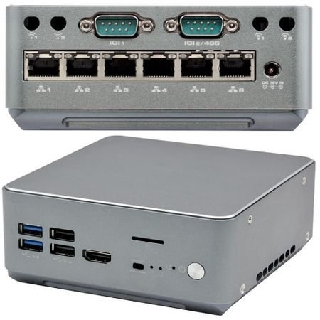 Компактный компьютер N8150Z-L6 (5205U), Celeron 5205U, 1 DDR4 SODIMM, 1 HDMI, 6 LAN, 4 USB, 2 COM, 1 M.2 E2230, 1 Mini PCIe, 1 отсек 2.5'' SATA, питание 12 V DC, -10~60 C