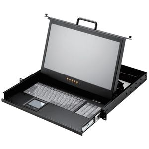 1U, 19'' LCD монитор, dual rail, набор кабелей 8 x 1.8m DVI-D/KB/Mouse USB, KVM переключатель на 8 компьютеров, русифицированная клавиатура, Touchpad