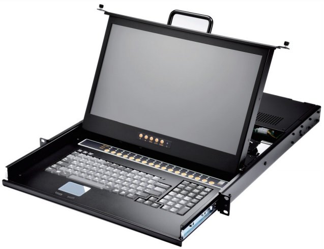 1U, 19'' LCD монитор, dual rail, набор кабелей 8 x 1.8m DVI-D/KB/Mouse USB, KVM переключатель на 8 компьютеров, русифицированная клавиатура, Touchpad
