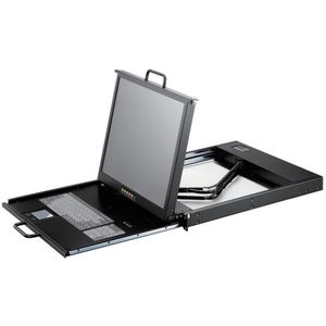 1U, 19'' LCD монитор, dual rail, набор кабелей 8 x 1.8m DVI-D/KB/Mouse USB, KVM переключатель на 8 компьютеров, русифицированная клавиатура, Touchpad