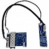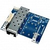 Контроллер выполнен в виде двух плат. На плате, которая устанавливается в M.2-слот, установлен чип контроллера Intel i210. На второй плате размещены слоты для модулей SFP, платы соединяются кабелем.