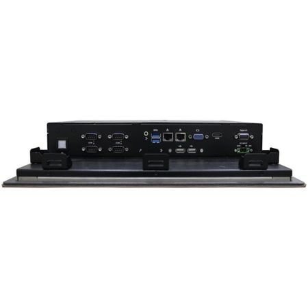 15'' XGA TFT LCD дисплеем, резистивный сенсорный экран, Intel Atom E3827 1.75ГГц, 1x 204-pin DDR3L-1333/1600 до 8 Гб, 1xCFast, 4x RS232/422/485, 2x USB 3.0, 2x USB 2.0, 2x LAN, Аудио, отсек 2.5'' SATA HDD, 1x VGA, 2x PCle Mini Card, питание 9-36В DC
