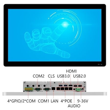 Панельный компьютер P1582X-P4 (8260U), 15.6'' 1920 x 1080 с емкостным сенсором, Core i5-8260U, 2 DDR4 SODIMM, HDMI, 5 LAN (4 PoE), 4 USB, 4 COM, GPIO, 1 Mini PCIe, 3 M.2 (E2230, M2280, B2242/2252), 1 отсек 2.5'' SATA, питание 9~36 V DC, 0~50С, IP65 (п.п.)