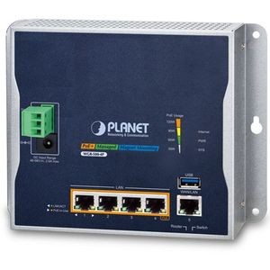 Промышленный марштутизатор WGR-500-4P, 4 порта 10/100/1000T LAN с PoE, 1 порт 10/100/1000T WAN, питание 48~56V DC, настенный монтаж, -10С~60C