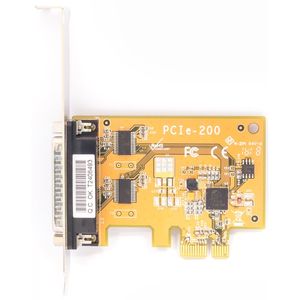 PCIe-200i - 2 универсальных интерфейса RS-232/422/485. EXAR XR17V352. Защита от электростатического разряда 15 кВ, защита от импульсных помех: 600 Вт. Каждый интерфейс подключается через свой разъём DB9M.