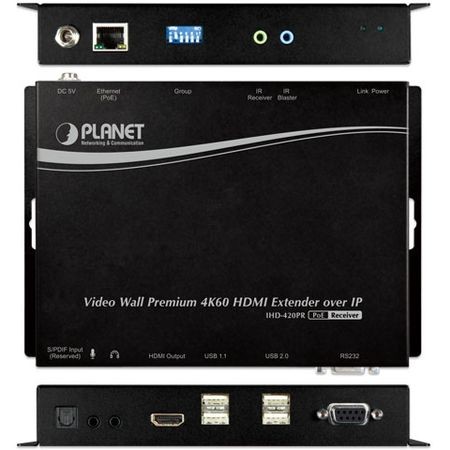 PLANET Technology Corporation выпустила комплект оборудования IHD-420, который представляет собой удлинитель видеоинтерфейса HDMI по IP. Комплект состоит из передатчика IHD-420PT и приемника IHD-420RT, он обеспечивает передачу видео 3840x2160 60/50 Гц, а также сигналов USB, аудио и IR через сеть Ethernet. В самом простом случае комплект не требует настройки и начинает работать при подключении питания, но при необходимости он может быть перенастроен для работы в режиме видеостены (один источник и несколько дисплеев с разными адресами). Комплект IHD-420 предназначен для использования предприятиями розничной торговли и общепита, на выставках, в конференц-залах, общественных пространствах.