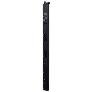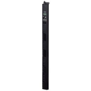 Кроме розеток C13, на передней панели блока расположены: ЖК-индикатор и кнопки управления, порт Ethernet, каскадные порты для объединения блоков, гнездо для внешнего датчика влажности, гнезда дискретных входов и выходов.