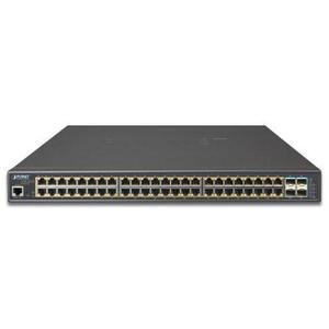Управляемый коммутатор GS-5220-48P4XR уровня L2+, 48 портов 10/100/1000BASE-T с 802.3at PoE, 4 порта SFP+ (10GBASE-SR/LR), бюджет PoE 400 Вт, питание 100~240 V AC и 36~60 V DC, резервирование питания, установка в стойку, 0С~50C