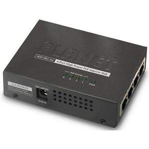 Инжектор HPOE-460, 4 порта 10/100/1000BASE-T, 4 порта 10/100/1000BASE-T с 802.3at PoE, бюджет PoE 120 Вт, питание 52~56 V DC, настольный, 0С~50C