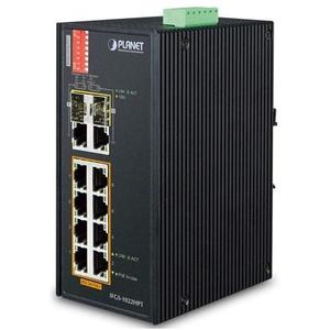Управляемый промышленный коммутатор IFGS-1022HPT, 8 портов 10/100 с 802.3at PoE, 2 порта Gigabit TP/SFP combo, бюджет PoE 240 Вт, установка на DIN-рейку, питание 48~56 V DC, резервирование питания, -40С~75C