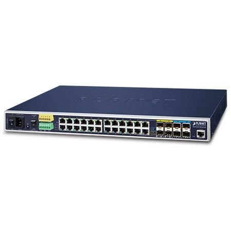 Управляемый коммутатор IGS-6325-20T4C4X уровня L3, 20 портов 10/100/1000BASE-Tс PoE 802.3at, 4 порта SFP/SFP+/медь, дискретный ввод-вывод, консольный порт, питание 48-56 V DC и 100-240 V AC