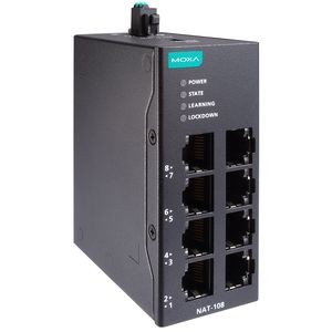 Устройство NAT-108, 8 x 10/100BaseT(X), питание 12~48 V DC, установка на DIN-рейку, -10~60C