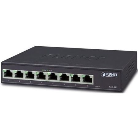 Коммутатор GSD-805, 8 портов 10/100/1000BASE-T, питание 100 ~ 240 V AC, настольный, 0С~50C