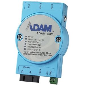 Промышленный коммутатор ADAM-6521-BE, 4 x 10/100, 1 x SC MM, питание 12~48 V DC, установка на DIN-рейку, -10~65C