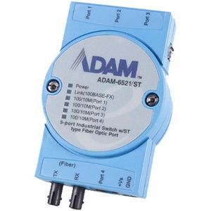 Промышленный коммутатор ADAM-6521/ST-AE, 4 x 10/100, 1 x ST SM, питание 12~48 V DC, установка на DIN-рейку, -10~65C
