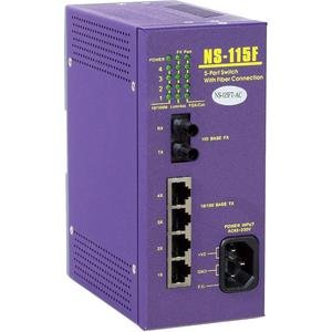 Промышленный коммутатор NS-115FT-AC, 4 порта 10/100 Base-T(X), 1 порт 100 Base-FX, волокно Multi-mode, коннектор ST, дальность 2 км, металлический корпус, крепление на DIN-рейку, питание 85 ~ 230 VAC
