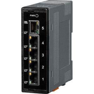 Коммутатор NS-205A, 5 портов 10/100 Base-T(X), питание +12~56 V DC, пропускная способность 3.2 Гбит/с, пластиковый корпус, крепление на DIN-рейку