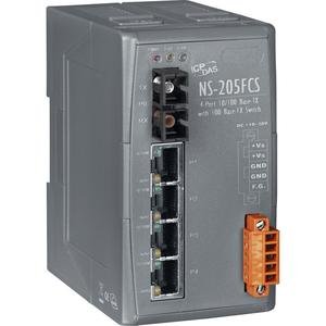 Промышленный коммутатор NS-205FCS, 4 порта 10/100 Base-T(X), 1 порт 100 Base-FX, волокно Single-mode, коннектор SС, дальность 15 км, пластиковый корпус, крепление на DIN-рейку