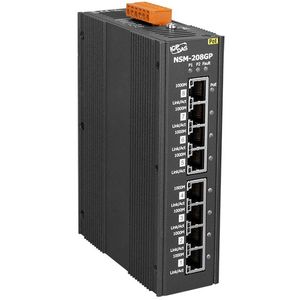 Коммутатор NSM-208GP, 8 портов 10/100/1000 Base-T c 802.3 af/at PoE, питание 24~53 V DC, металлический корпус, крепление на DIN-рейку, -25~75C